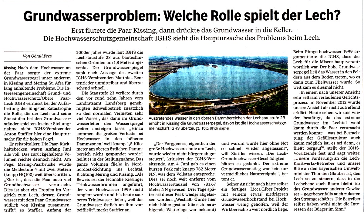 | Verein: | Name: Interessengemeinschaft Grund- und Hochwasserschutz/Obere Paar-Lech e.V. Vereinsregistereintrag: VR 10753 vom Dez 2002 |