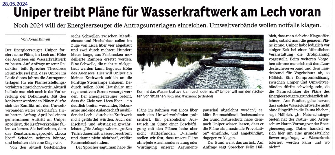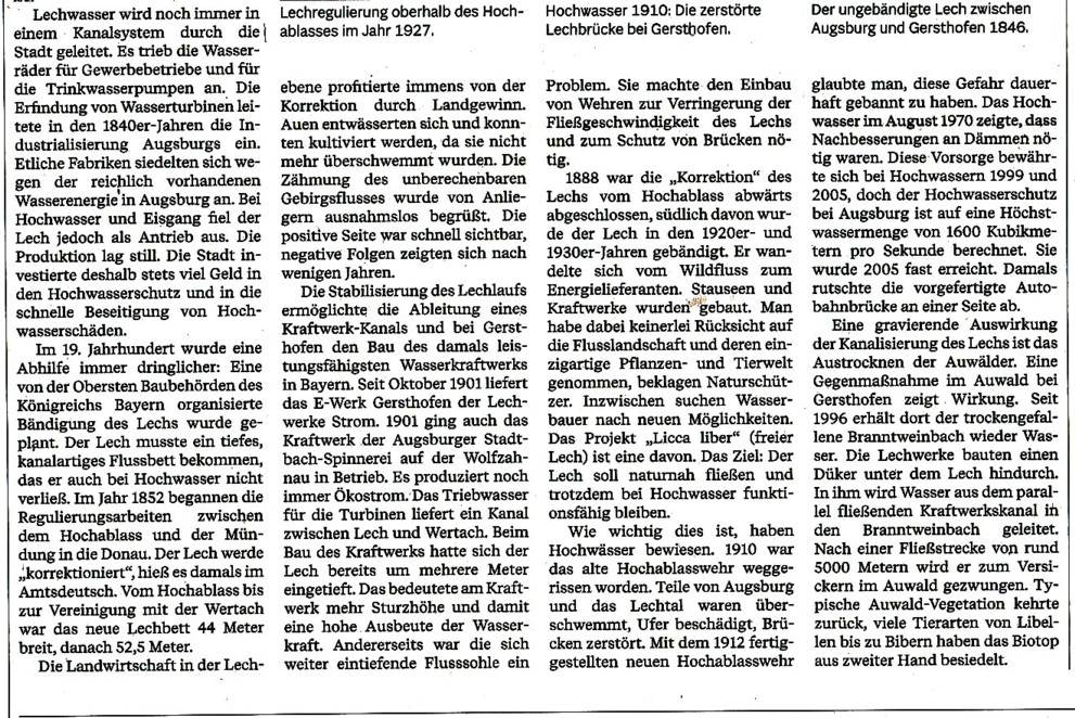 Unsere aktuellen Ziele (Stand 1.1.2013):1. Reduzierung der Wasserverluste aus den Lech-Staustufen
